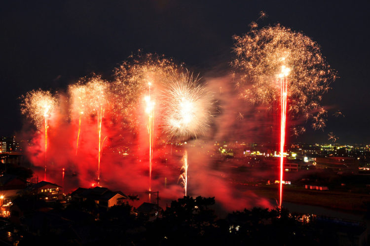豊橋祇園祭の花火大会は、日本三大花火大会の一つに数えられています。花火大会では、様々な種類の花火が打ち上げられます。例えば、スターマイン、ワイドスターマイン、フィナーレなどです。また、豊橋祇園祭の花火大会は、豊橋公園という広大な会場で行われるため、多くの観客が花火を楽しむことができます。