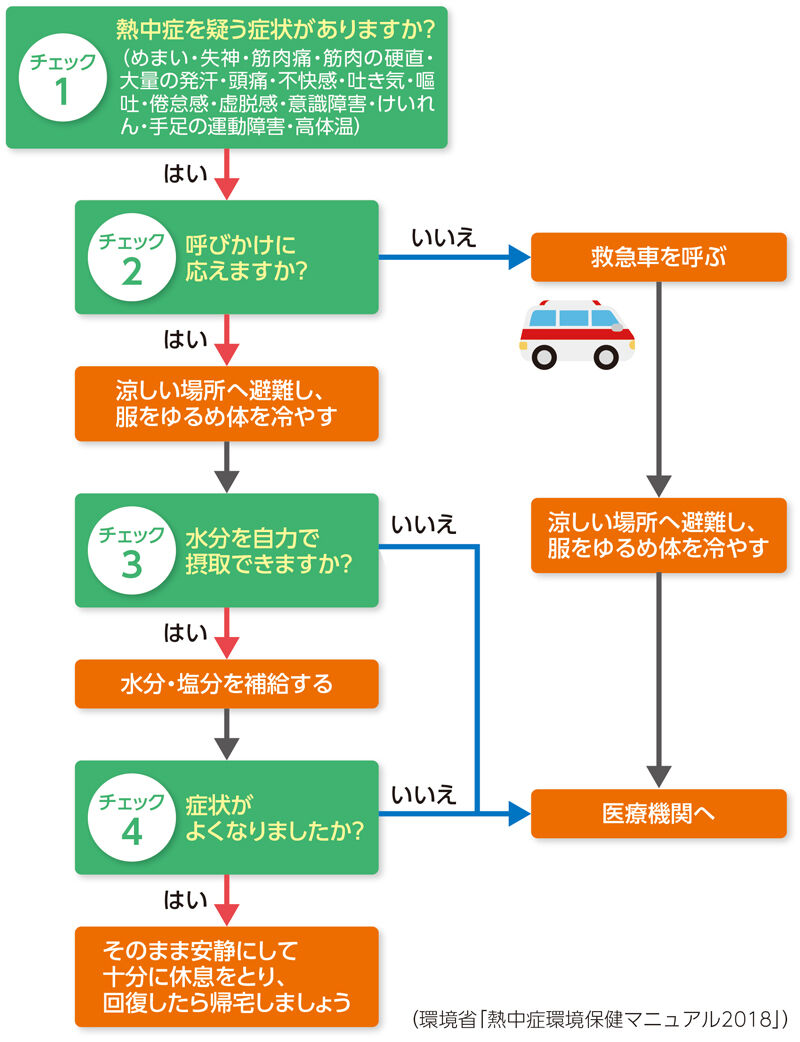 高次機能障害(記憶力低下や判断力低下)や麻痺、嚥下機能障害、歩行機能障害などの後遺症が残ることがあります。熱中症=脳ダメージと覚えておきましょう。