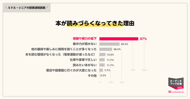 @PRTIMES_ETMミドル・シニア世代で“目を使わない読書”のニーズ高まる 約9割「老眼や視力の低下」で本が読みづらくなった prtimes.jp/main/html/rd/p… @PRTIMES_JPより pic.twitter.com/NXjXWdxqzb