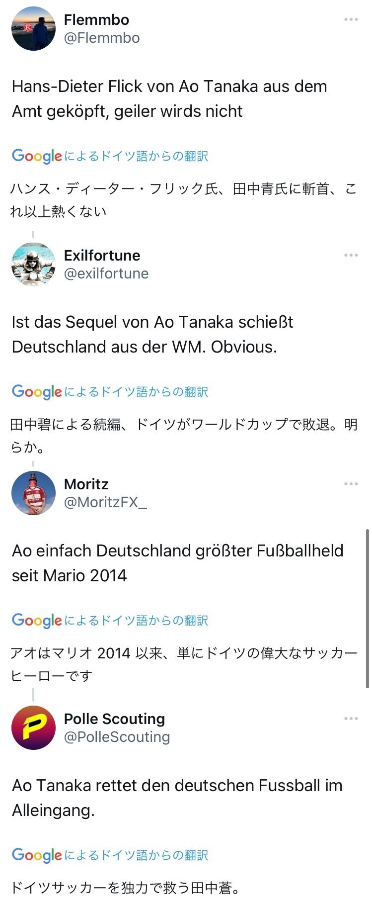 「田中碧による続編、ドイツがワールドカップで敗退。明らか。」
