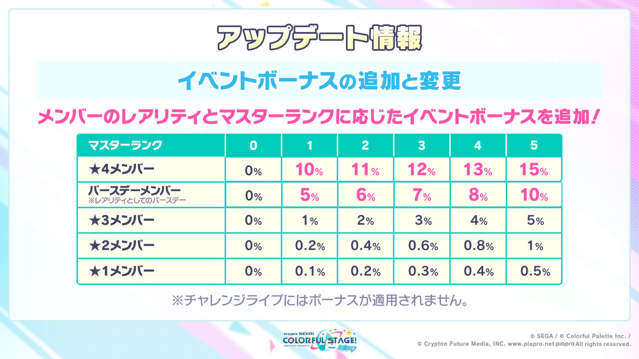 他にはサブユニットを持たないバーチャルシンガーは15%の補正を持つ。(今回は該当するバチャシン不在)
