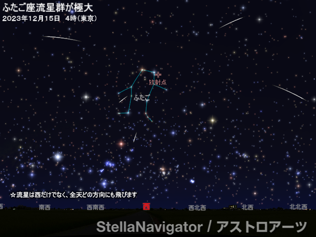 月明かりが無い新月という絶好の環境でふたご座流星群を見られるのは8年ぶりということです。