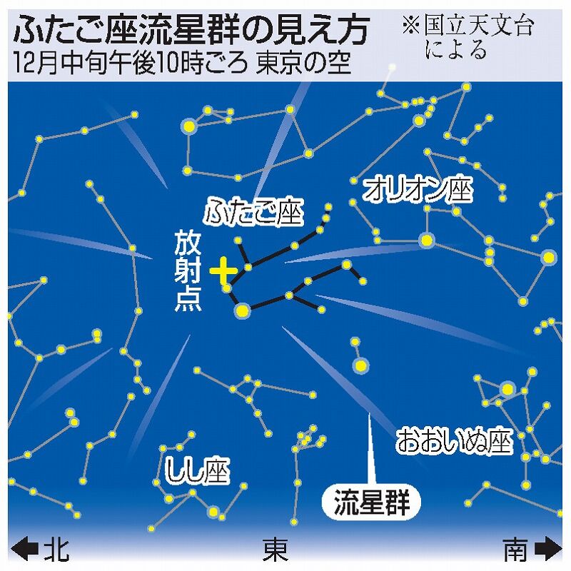 | 「ふたご座流星群」8年ぶり好条件 14日夜から15日未明がピーク - nhk.or.jp 「ふたご座流星群」8年ぶり好条件 14日夜から15日未明がピーク nhk.or.jp (出典:nhk.or.jp) |