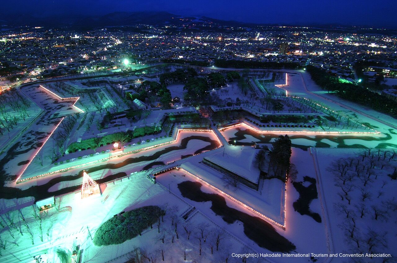 @gota_kun壁IΘ•。) < 今日12月1日から2月末日まで、五稜郭の堀の周りを約2,000個の電球で星形に彩る「五稜星の夢(ほしのゆめ)イルミネーション」が、スタートしましたごー♪(。•ᴗ•)ノ✨️ 日没〜19時まで毎日点灯していますご ※五稜郭タワーの営業時間は、18時までご ※本日17時頃撮影 #函館 #五稜郭 pic.twitter.com/kQQcmyA88u