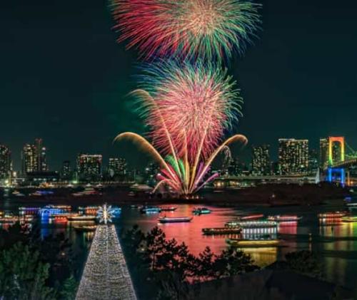 日本最大級となるワイド約1.5kmの広大な敷地から約8,000発が打ち上がる花火のスケール感です。花火と客席の距離も近く、視界いっぱいに打ち上がることで、花火音や花火の匂いとともにまるで花火に包まれるような感覚を味わうことができます。