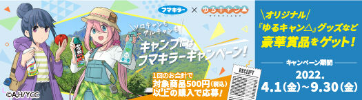 2024年4月1日より、対象のフマキラー商品を500円(税込)以上購入したレシートをアップロードして応募すると、抽選で『ゆるキャン△』オリジナルコラボグッズが当たるキャンペーン