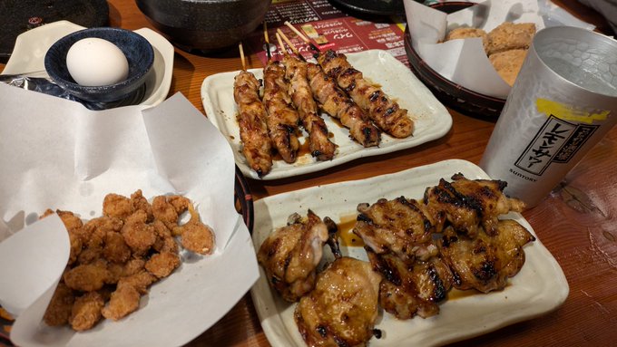 ワイ「ほーい」(焼き鳥を串に刺し直す)
