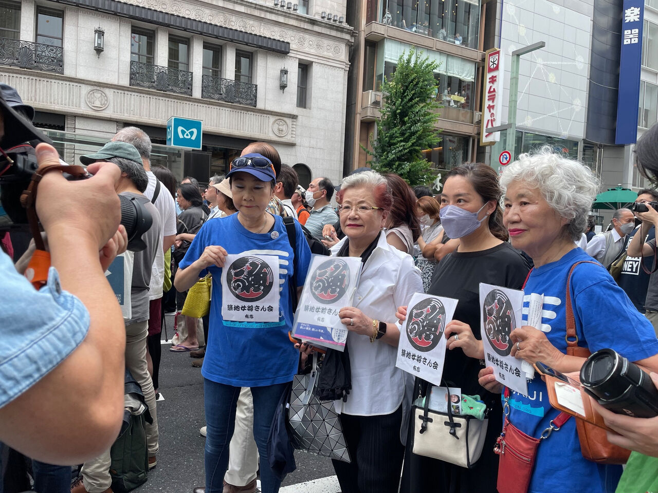 こうした人々の多くは声を発していなかったが、突然、ロータリーにスピーカーで大音量を流す車が近づいてくる。