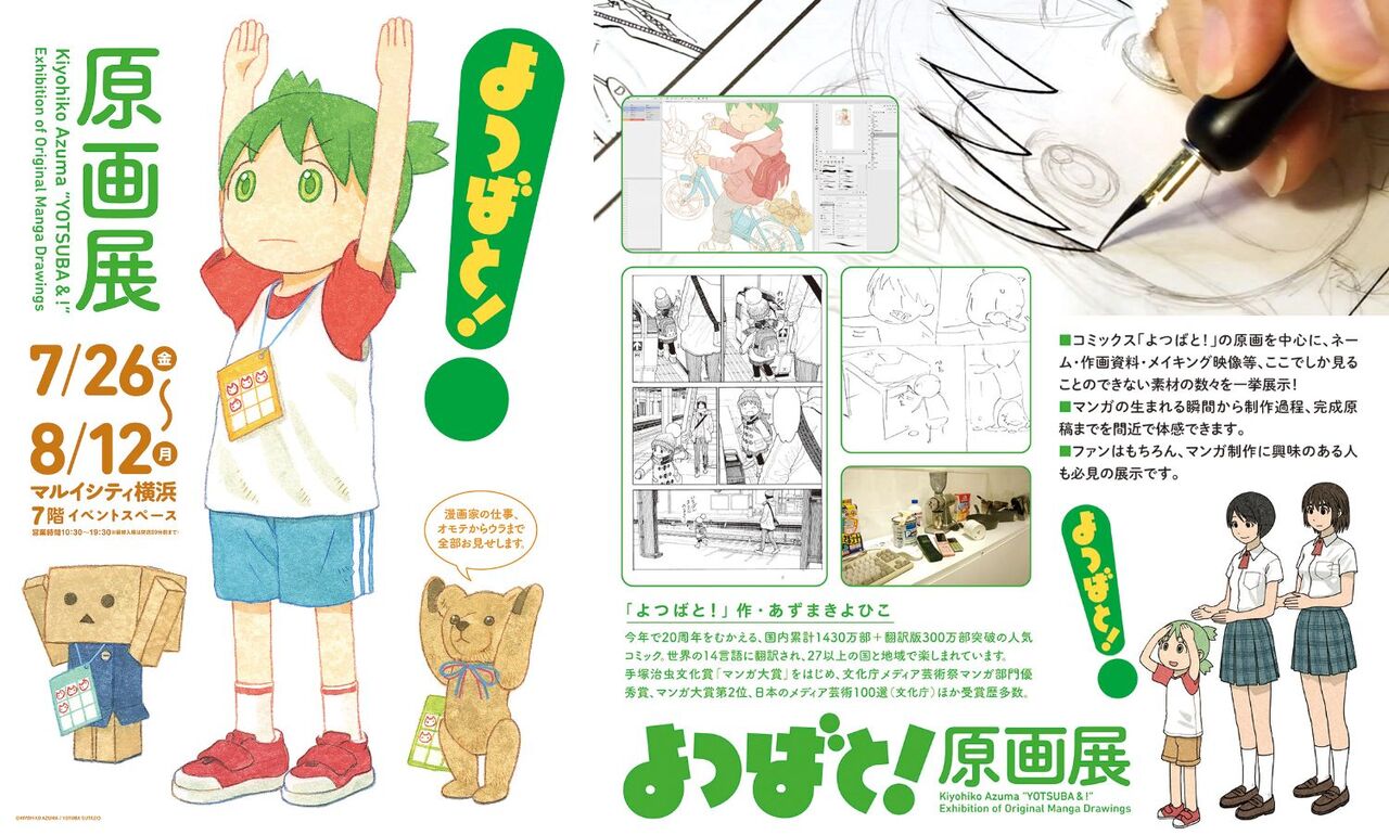 @428and_tweet好評巡回中の「よつばと!原画展」がマルイシティ横浜にて再び開催!(7/26〜8/12) 5年にわたる人気展覧会の最新版です。未見の方は是非! 【開催概要】→0101.co.jp/077/event/deta… pic.twitter.com/D7nR3vRv8a