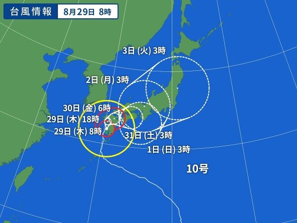 9月2日には東日本へ、3日には三陸沖へ進むでしょう。9月に入っても台風として勢力を保ちながら本州を縦断するため、週明けまで長期間、台風に警戒が必要となるでしょう。