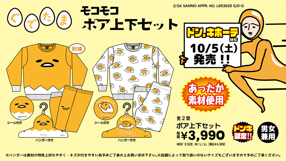 ドンキ『ぐでたま』コラボ2024年冬のボア上下セットが10月5日(土)より発売!