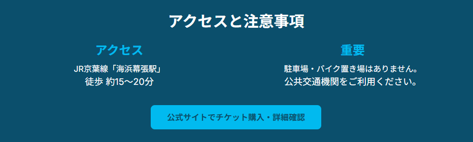 公式ページ: 最新情報やチケットの詳細については、以下の公式サイトを必ずご確認ください。