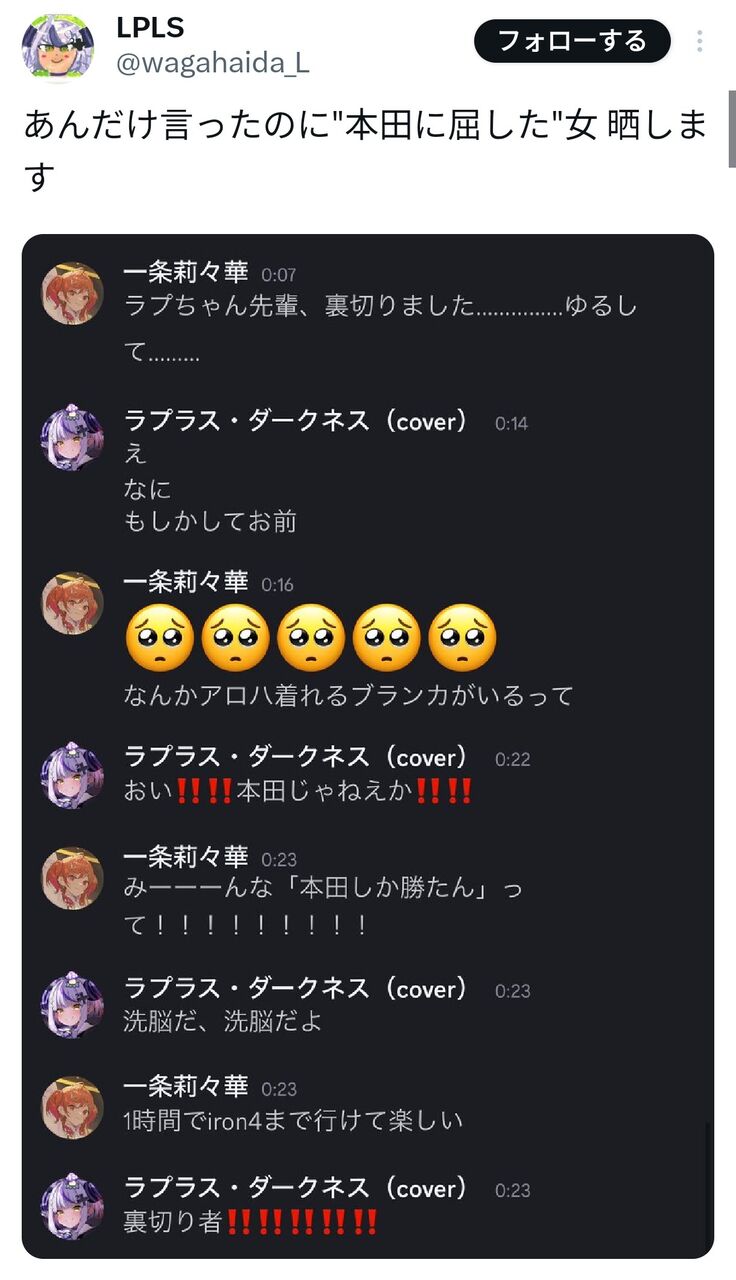 — 一条莉々華🌃ReGLOSS (@ichijouririka) August 11, 2025