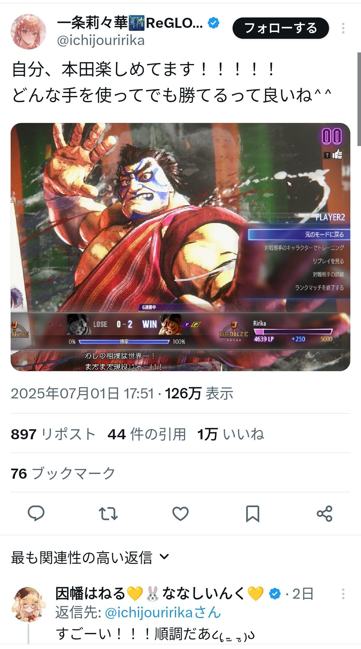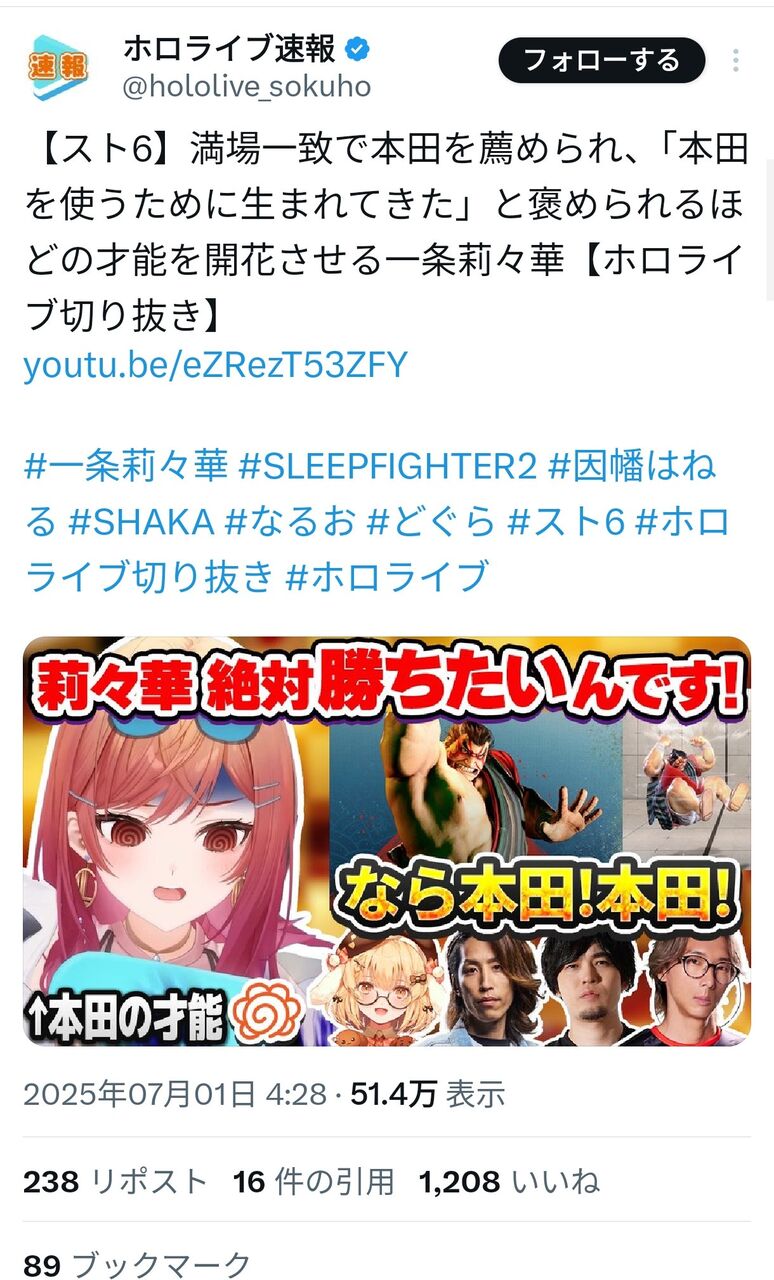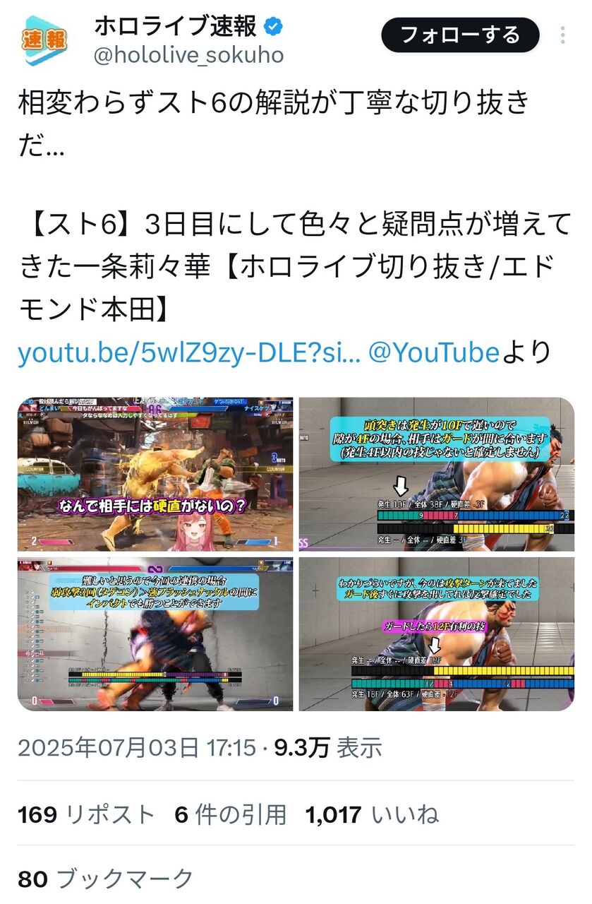 引用元: 一条莉々華ストファイ6の大会出て同接一気に上がったけど登録者数増えないな https://mi.5ch.net/test/read.cgi/news4vip/1751798999/