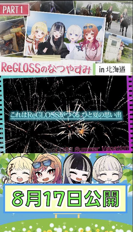 @hololivetv📺ReGLOSS公式番組情報📺 #ReGLOSSのなつやすみ デビュー2周年を前に、ReGLOSSが念願の北海道へ2泊3日の夏休み旅行に🧳 そんな旅行Vlogを3週連続でお見せします!✨ 1週目は念願の乗馬🐎に挑戦!? 🔽出演者 #ReGLOSS ⏰配信日時 8月17日(日)19時 🔽待機所 youtu.be/BYUHaT_tnf8 pic.x.com/BSvXYMjwRU
