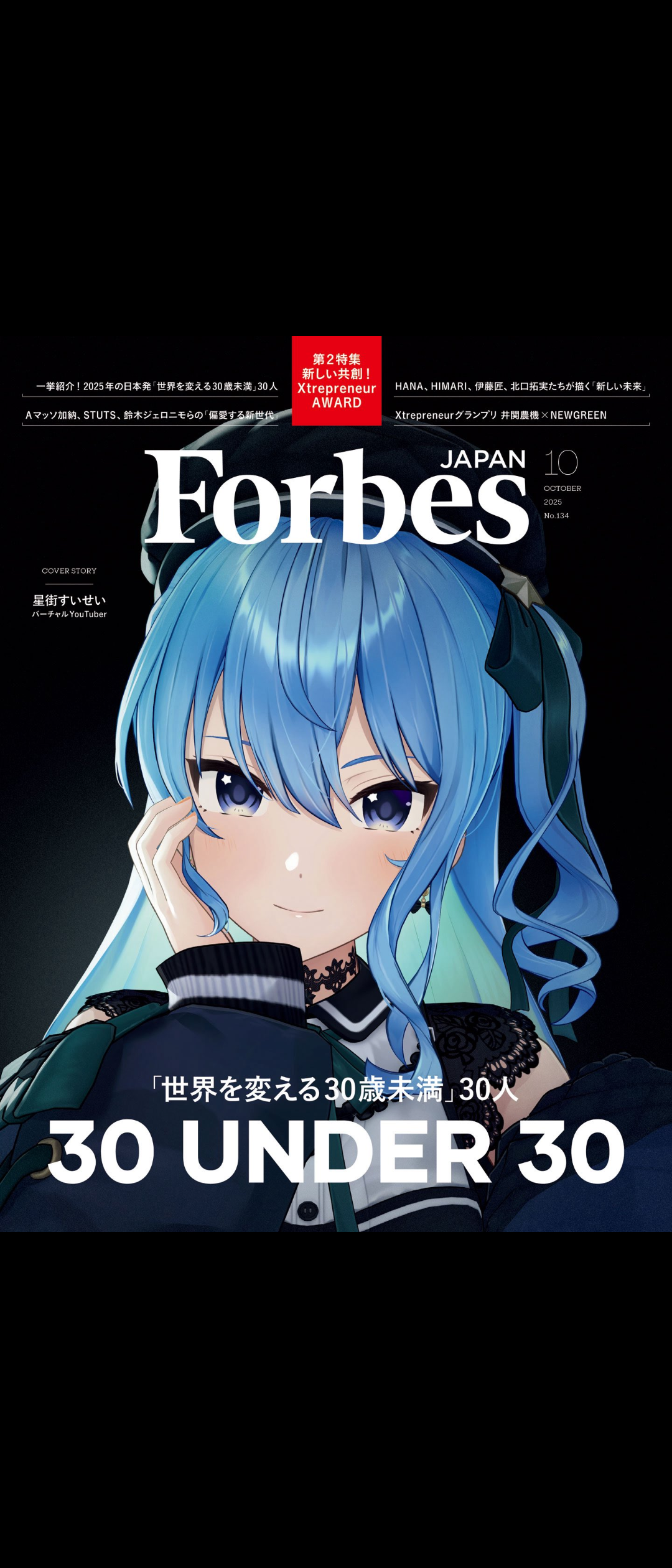 ホロライブ所属VTuber「星街すいせい」がビジネス誌「Forbes JAPAN」の「世界を変える30歳未満の30人」日本代表に選出。