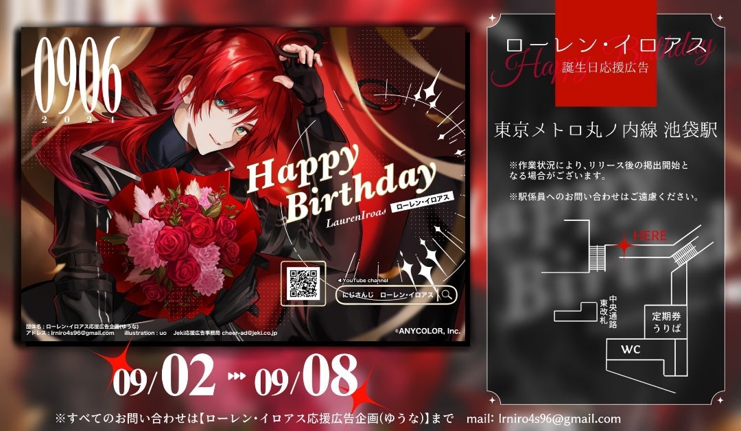@LrnOiwai0906当アカウントはローレン・イロアスさん応援広告企画になります🌟 都内某所にてお誕生日を記念した応援広告を掲出予定です🫶🏻 9/1 12:00に詳細を当アカウントにてツイートいたします!よろしくお願いいたします🎀