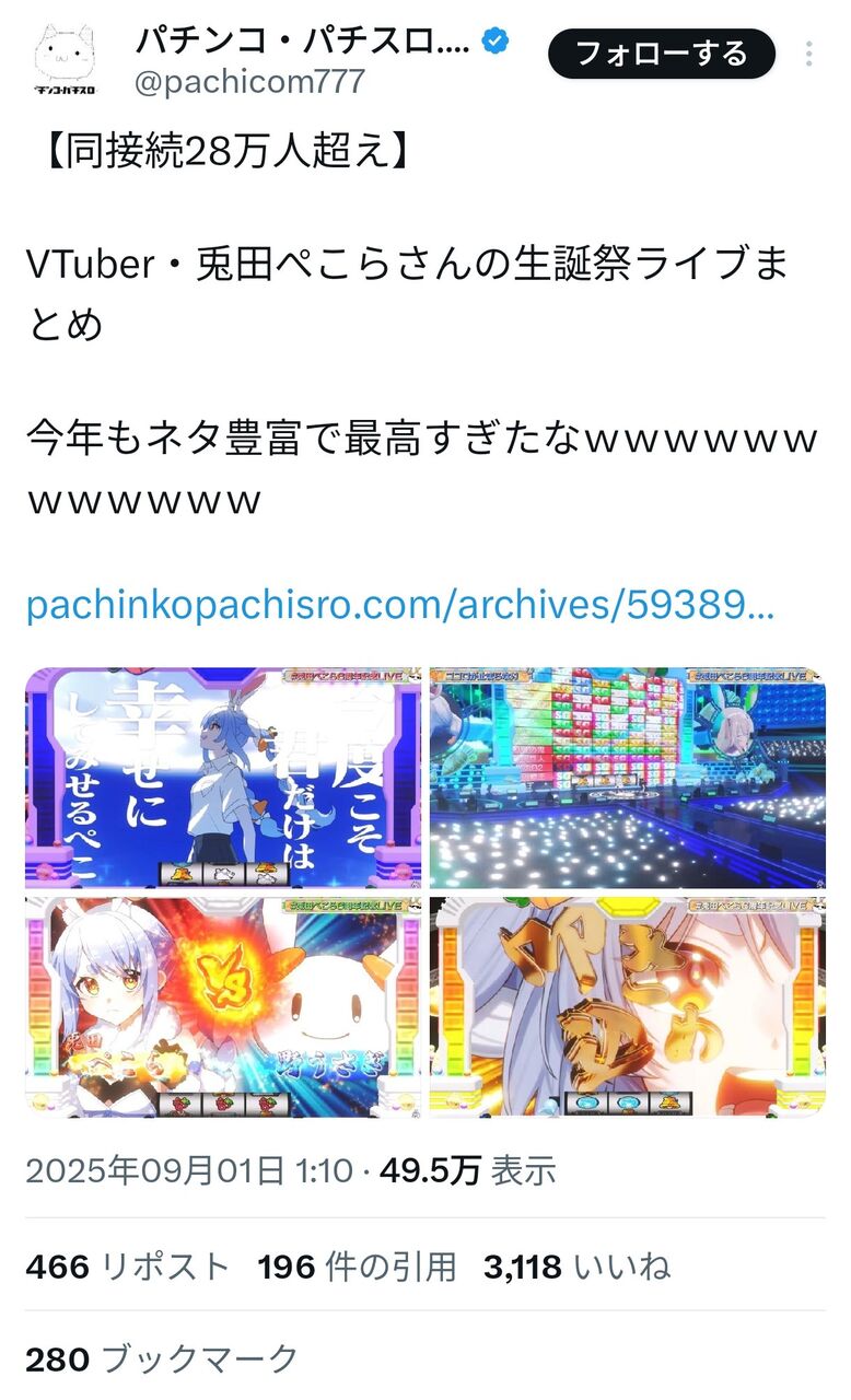 【画像】兎田ぺこらさんの3Dライブ、パチカス、スロカス界隈でもしっかり話題になるwwwwwww