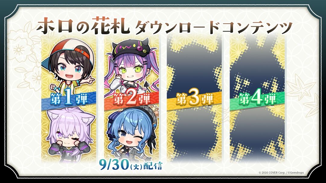 @haya91504068281「ホロの花札」DLC第2弾「星街すいせい&常闇トワ」セットが9月30日配信決定! TGS2025に出展(GAME Watch) #Yahooニュース news.yahoo.co.jp/articles/c5914… ジェムドロップ株式会社 東証グロース カバー株式会社 5253 カバー株