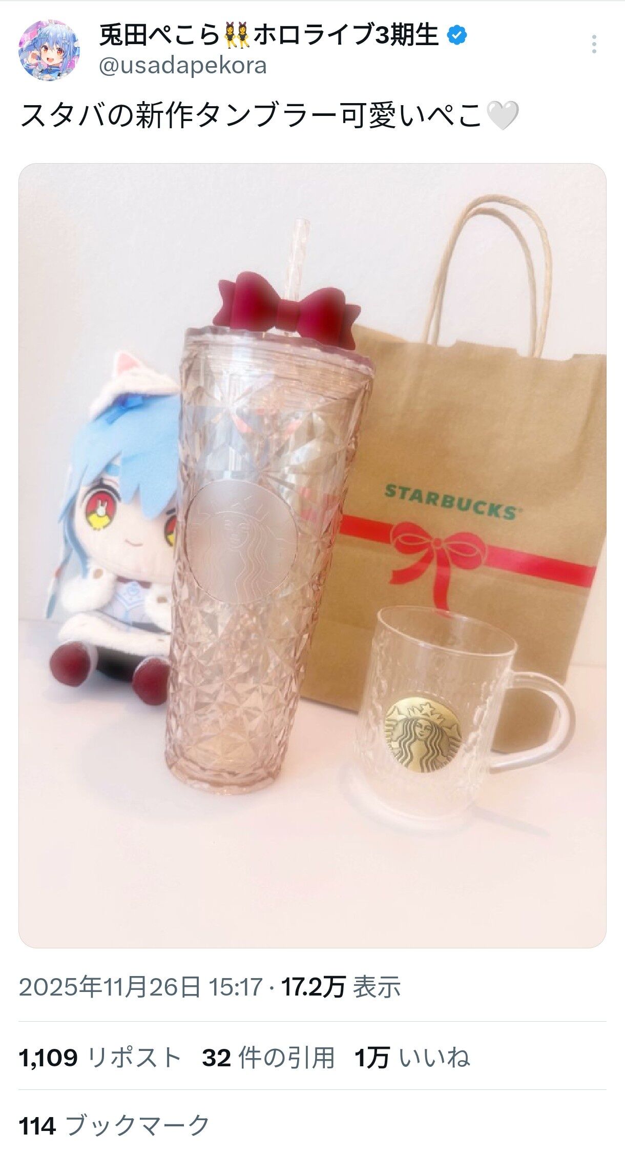 — 兎田ぺこら👯♀️ホロライブ3期生 (@usadapekora) November 26, 2025