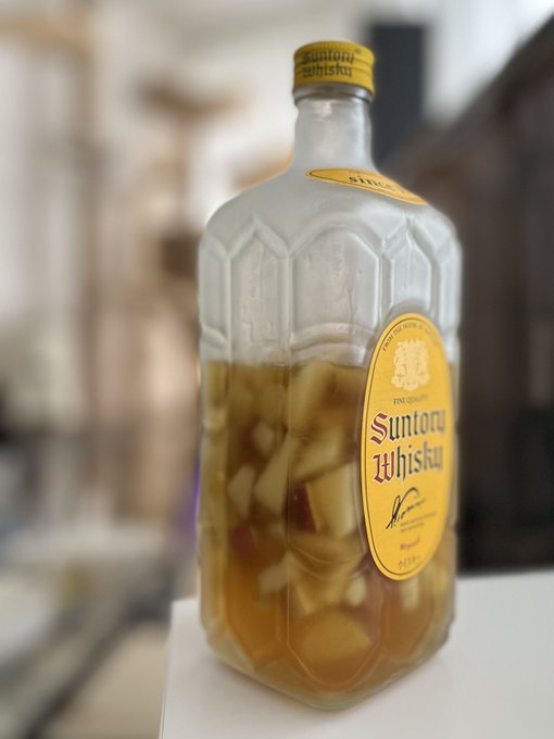 「ウイスキーにリンゴを漬け込んで飲むとめちゃくちゃ美味い!!」という情報をいただいたので、角に投下して冷凍庫で3日。 …ハイボールやばい。最高の日曜。騙されたと思ってやってみ!